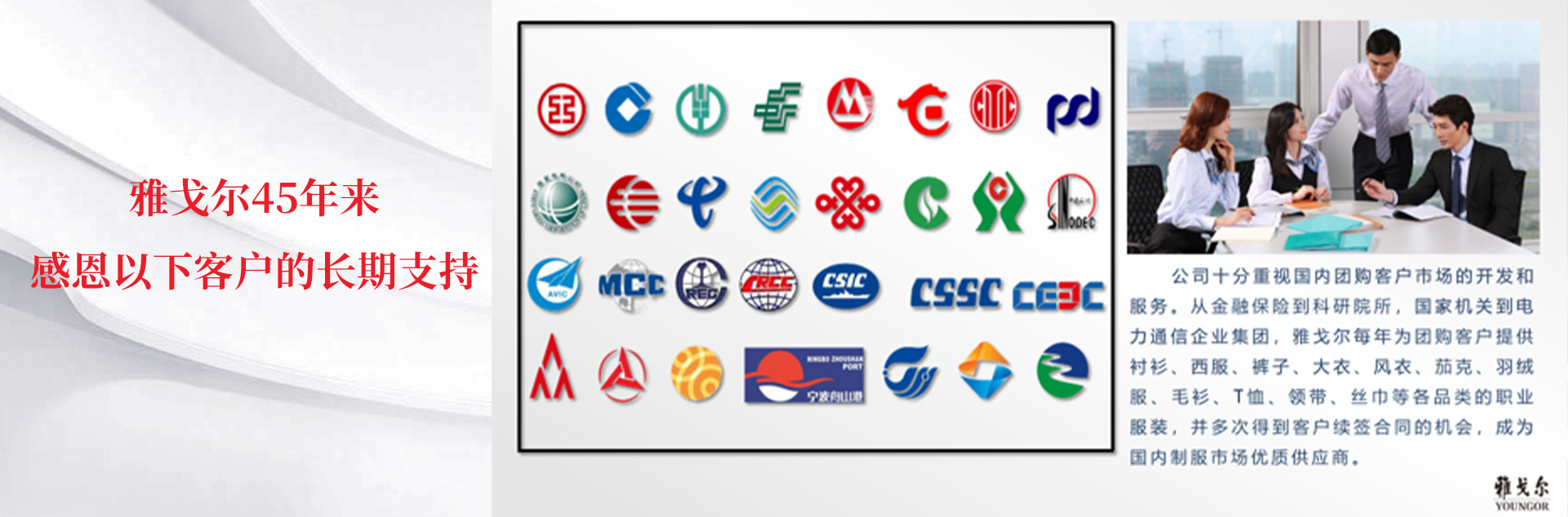 經(jīng)過45年的發(fā)展,雅戈?duì)栆研纬梢詴r(shí)尚產(chǎn)業(yè)為核心,多元井進(jìn)、專業(yè)化發(fā)展的綜合性國(guó)際化企業(yè)集團(tuán)。下設(shè)時(shí)尚、房地產(chǎn)、投資、國(guó)貿(mào)、旅游五大產(chǎn)業(yè)。